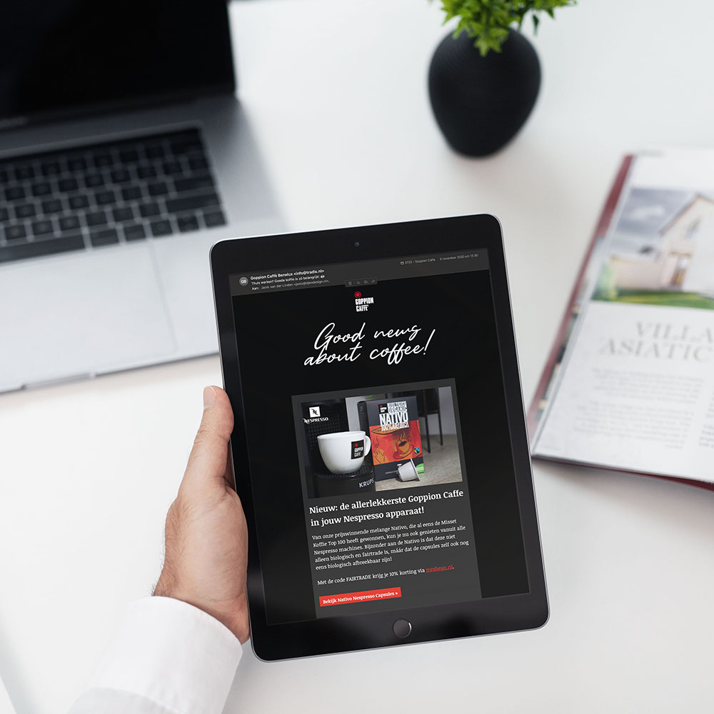 Djen ging bij Goppion Caffè Benelux op de koffie ;-) en een sterke samenwerking volgde. Wij verzorgen de vormgeving voor de social media posts, nieuwsbrieven en maken regelmatig luxe koffiemenu's op voor even bijzondere restaurants, bars en cafés!
