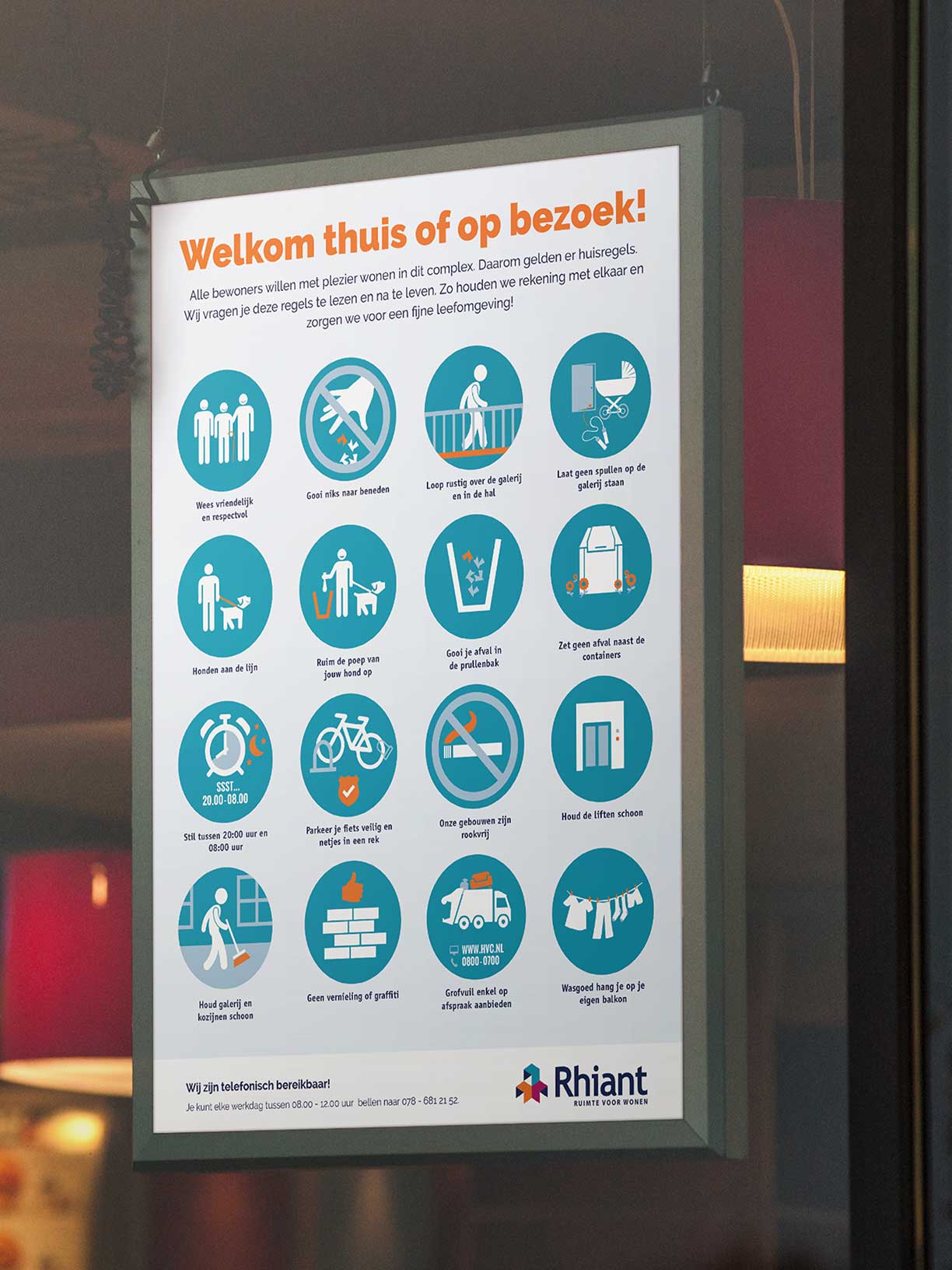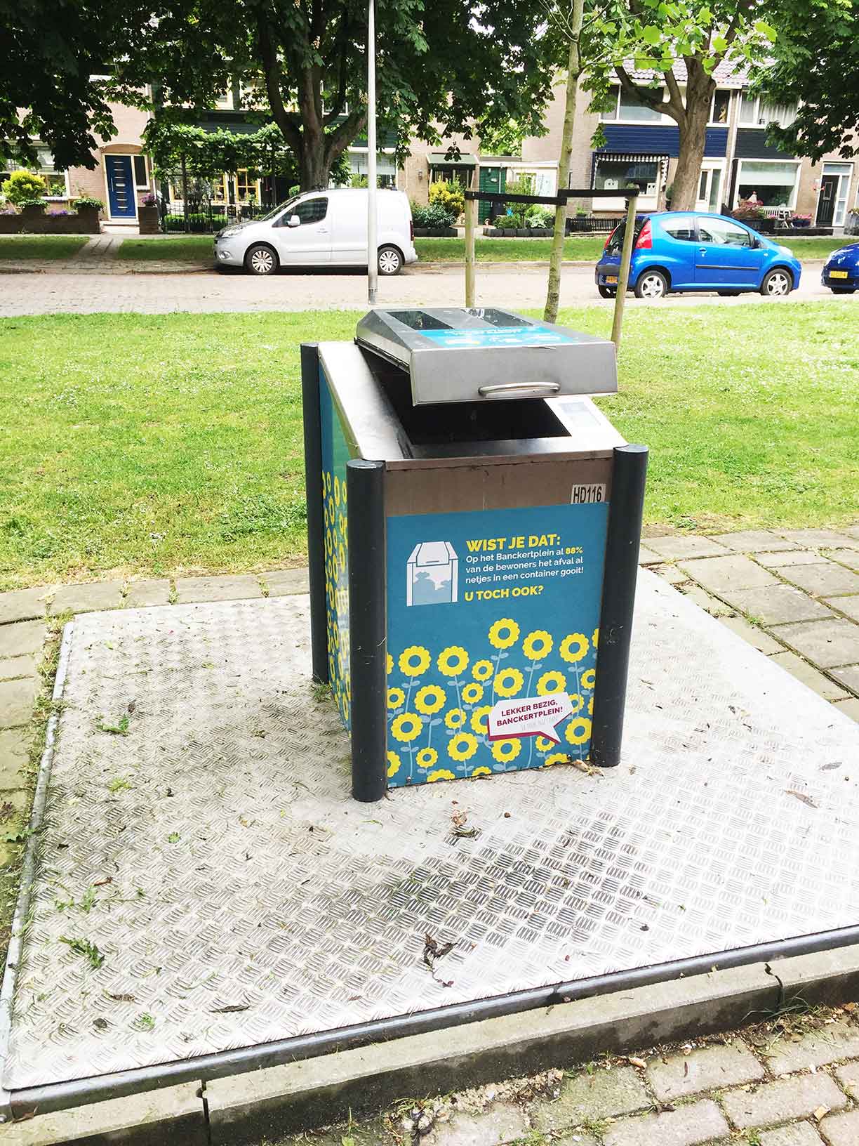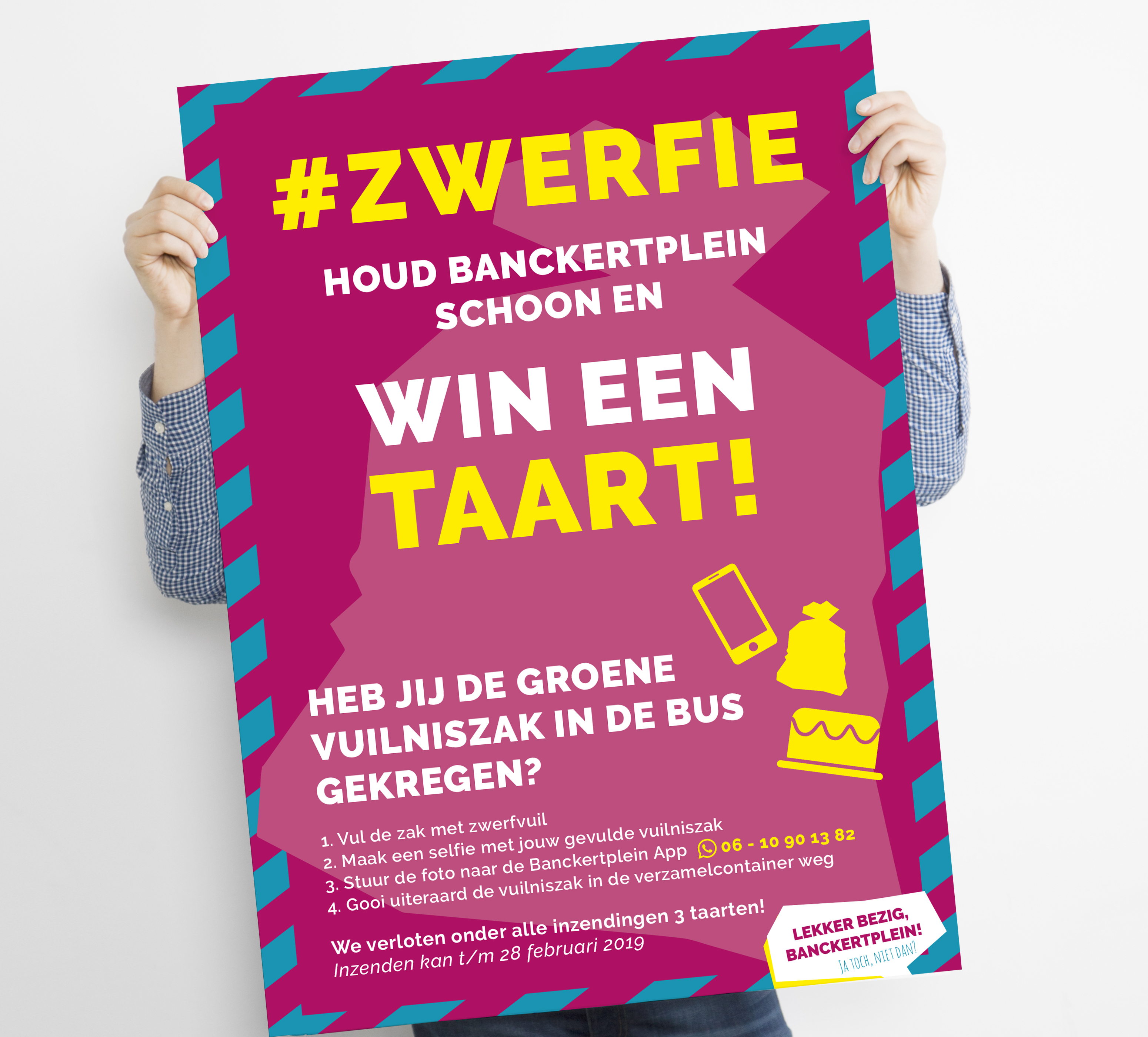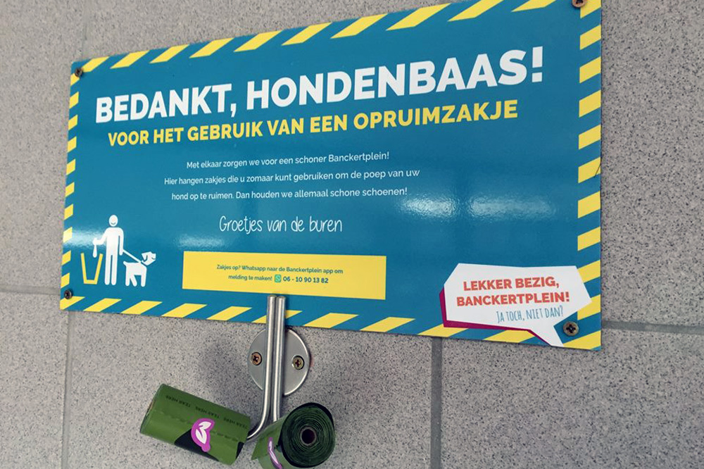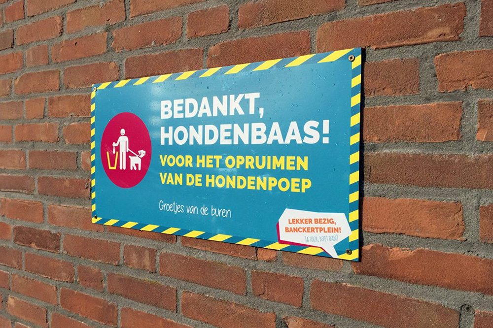 Rhiant klopte bij Djen aan voor ondersteuning bij het opzetten van een campagne om de leefbaarheid in de wijk Banckerplein te verbeteren. Onder het motto: ‘Lekker bezig, Banckertplein!’ werd in 2019 elke maand één vorm van overlast aangekaart. Steeds in de vorm van positieve, (ludieke) acties en nudging.